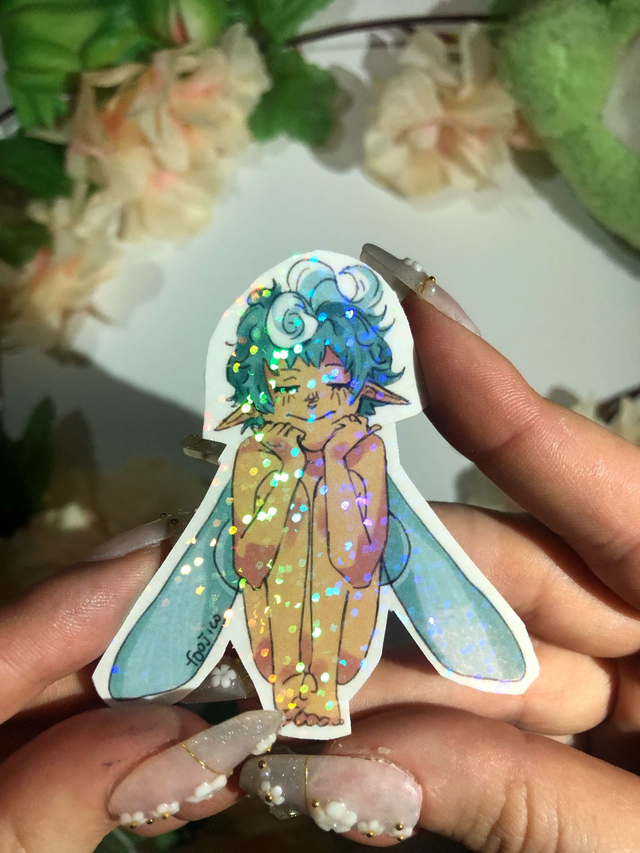 Sticker d'environ 7cm avec couverture holographique (voir photo).